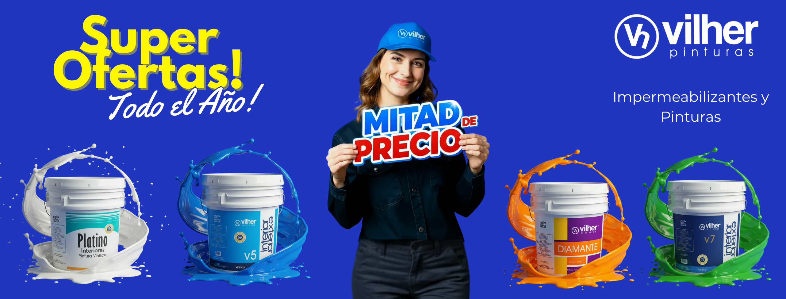 Pintura Vilher Vinílica Acrílica Diamante 4 Litros 3 Años Interior y Exterior