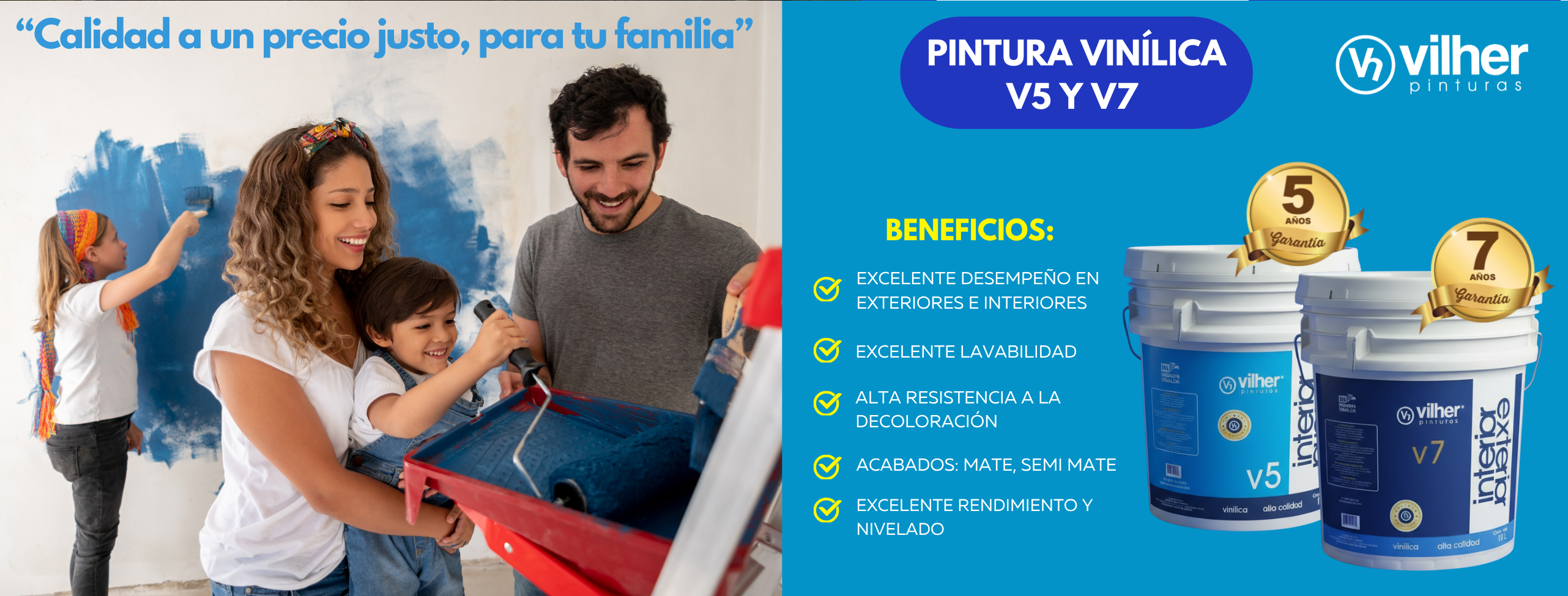 Pintura Vilher V7 Vinílica Acrílica 4 Litros 7 Años Interior y Exterior